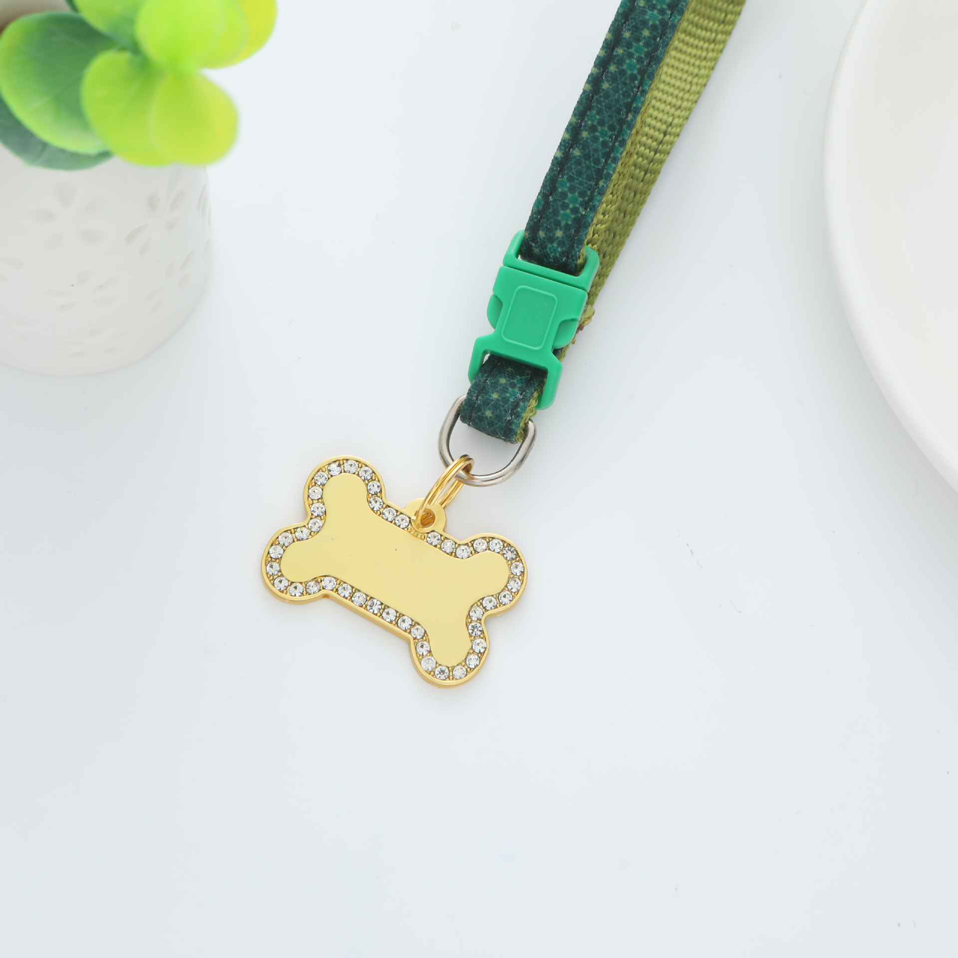 新しい金属の犬の札はダイヤモンドの金色の骨のレーザーの犬の札のペットの首輪のペンダントの身分を入れて下げ札をなくします。