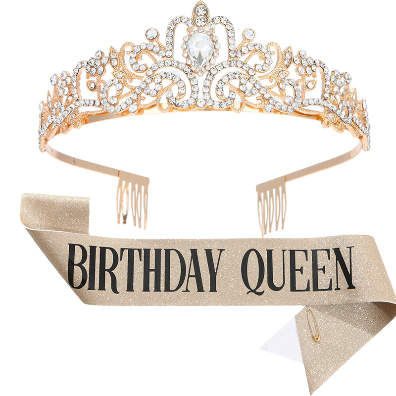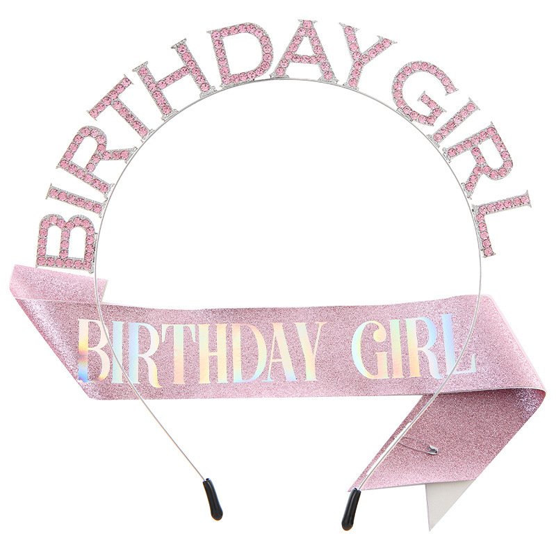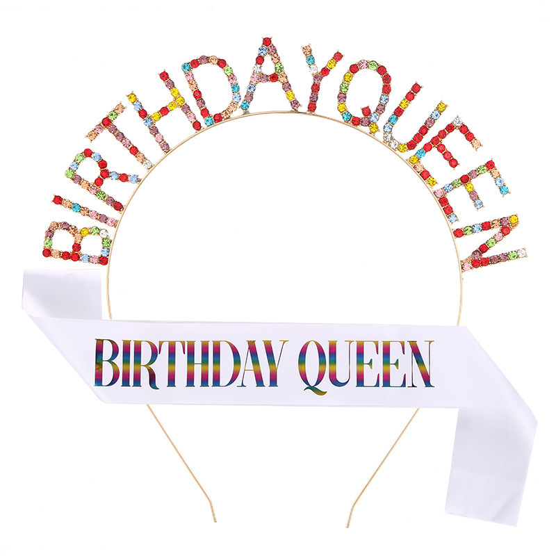 欧米のファッションカラー誕生日パーティーのカチューシャベルト肩ベルトクリスタルカチューシャbirthday queenリボン