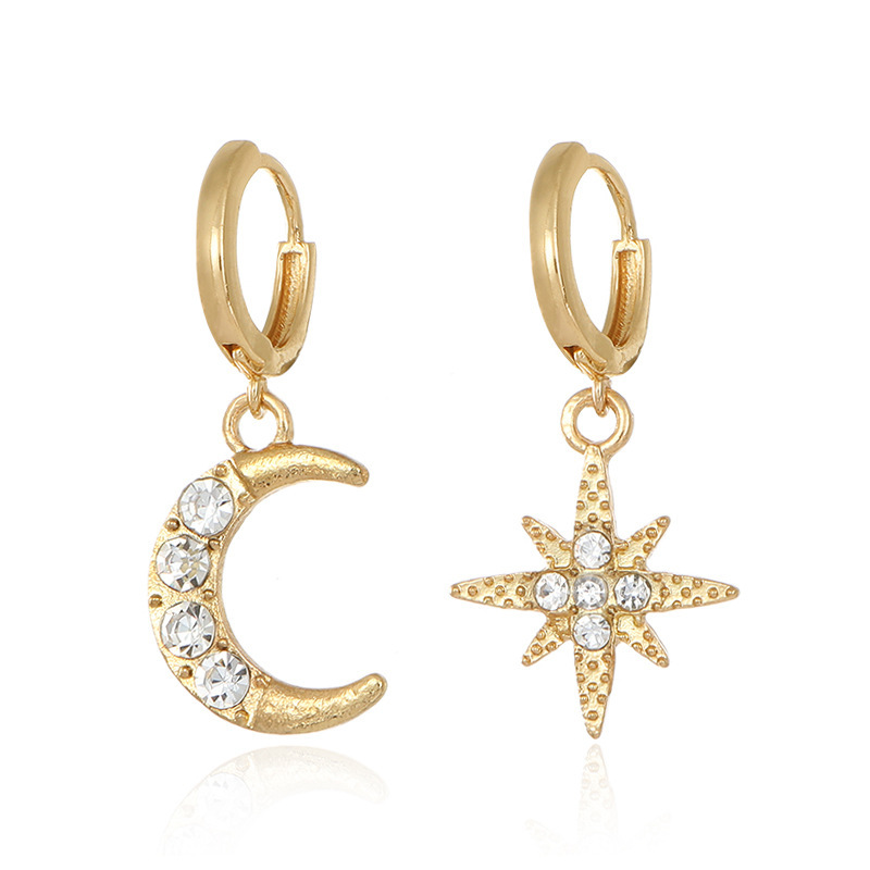 欧米のクロスボーダーの8芒星の非対称イヤリングの耳のボタンは精巧に星の月の個性の耳飾りの女性を入れます。