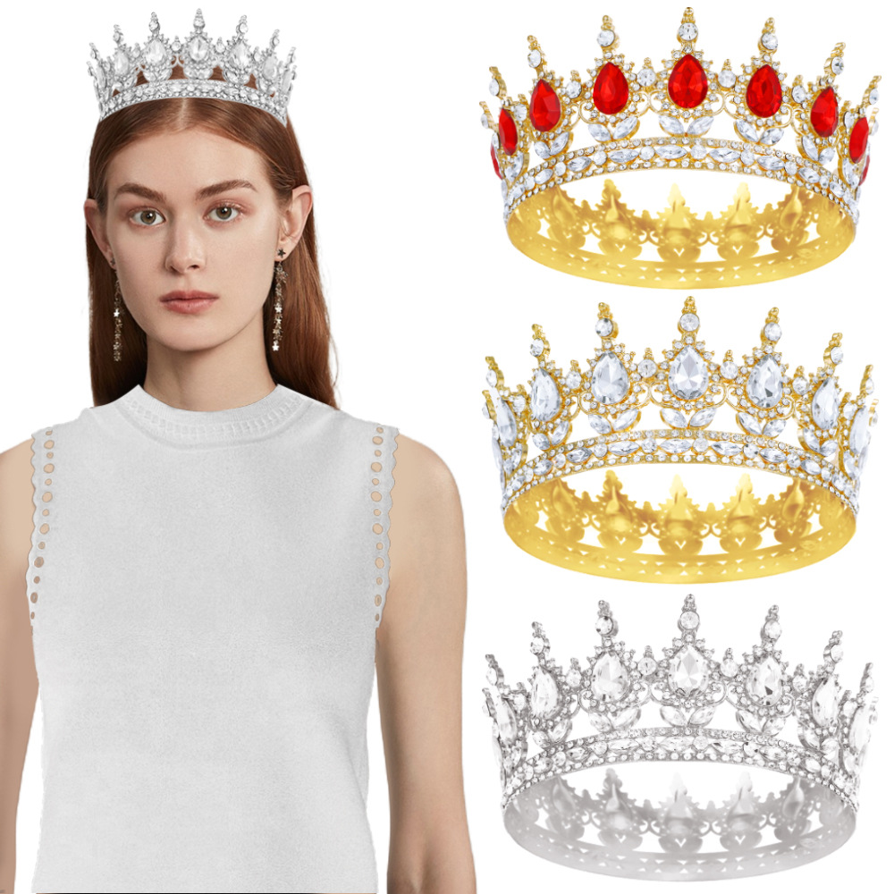 欧米国境を越えたバロック花嫁円皇冠パーティー舞踏会王女の頭飾り誕生日王冠水晶髪飾り女
