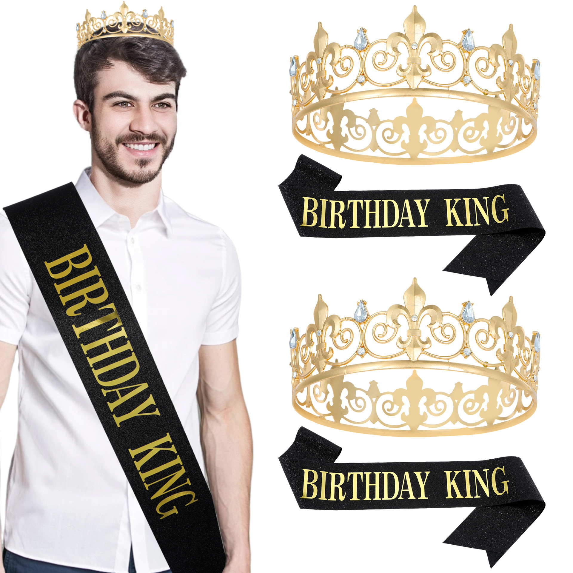 欧米の男性の円形の王冠の王冠のbirthday kingのリボンの诞生日のパーティーの装饰の合金の髪饰りの配达