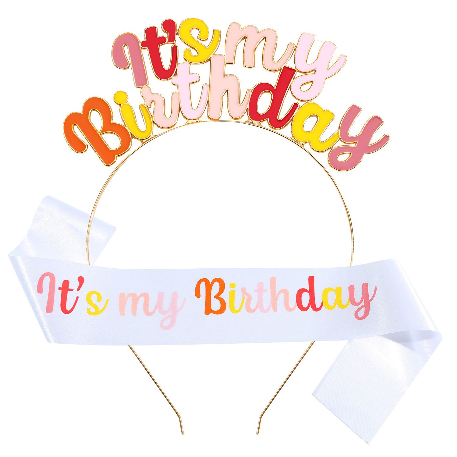新しいレインボーカラーヘッドバンド IT'S MY BIRTHDAY 誕生日ストラップヘッドバンドセットレターヘアアクセサリーストラップ