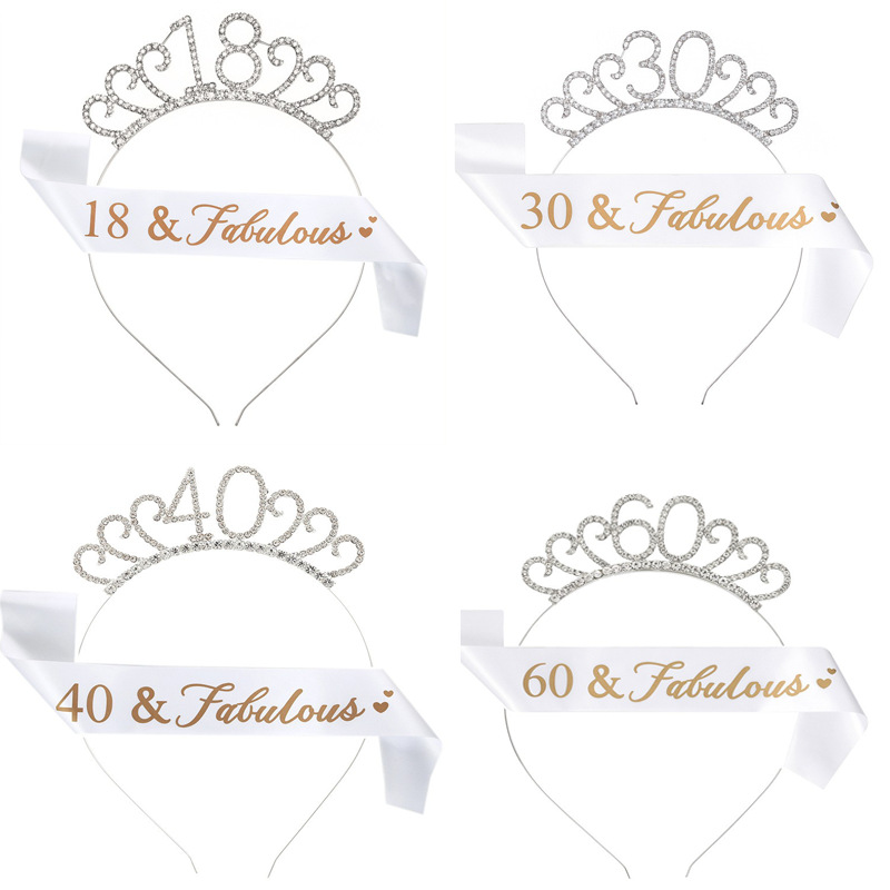 クロスボーダーファッション合金デジタルクラウン18歳女の子の誕生日ヘッドバンドショルダーストラップセットパーティーパーティープロムヘッドドレス