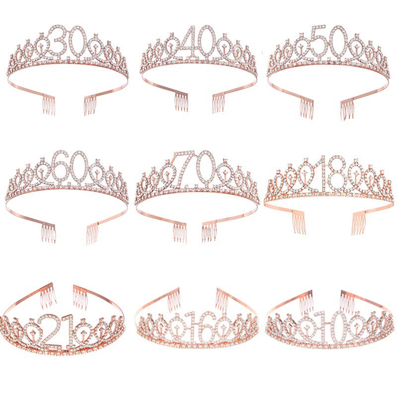 クロスボーダーヨーロッパとアメリカのパーソナライズされた誕生日クラウンラインストーンヘッドバンドデジタル合金クラウンシングルパーティーダンスヘッドドレスヘアアクセサリー