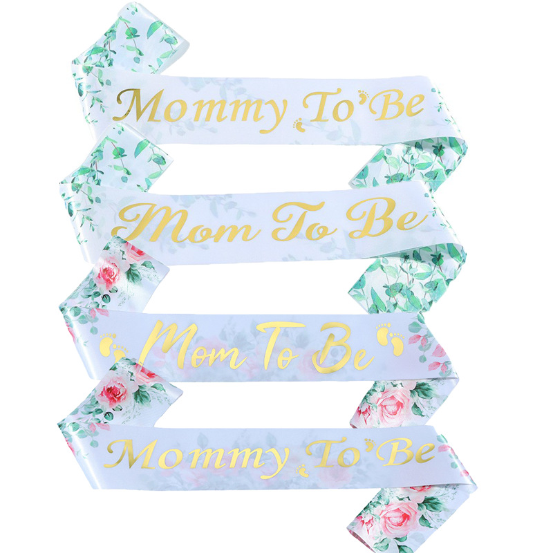 ヨーロッパとアメリカの新しいスタイルの足跡妊婦サテン生地ホットゴールド文字エチケットベルトベビーパーティーショルダーストラップ在庫あり