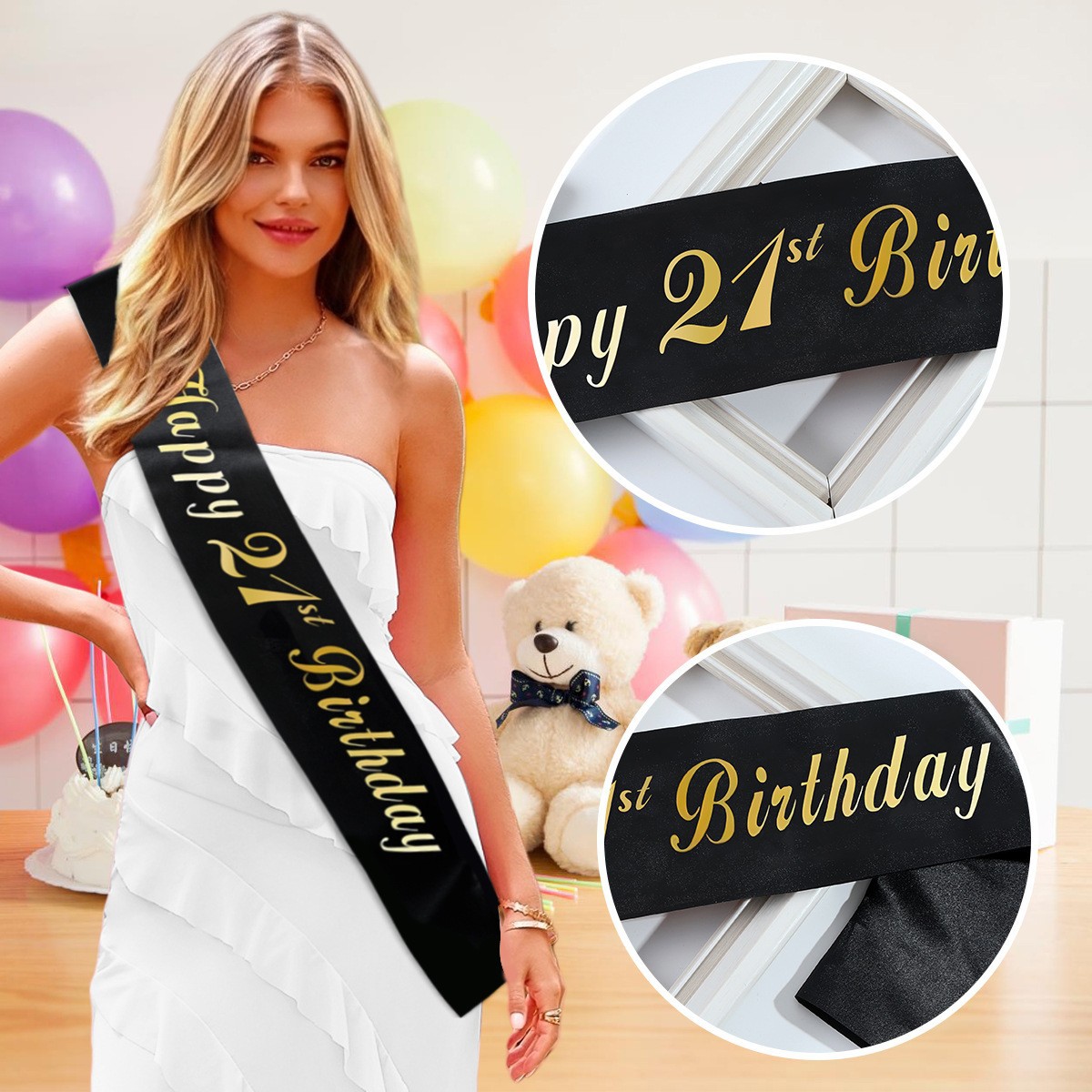 クロスボーダー新しいヨーロッパとアメリカの誕生日パーティーショルダーストラップ HAPPY BIRTHDAY ショルダーストラップ ブラック ホットスタンピング エチケット リボン
