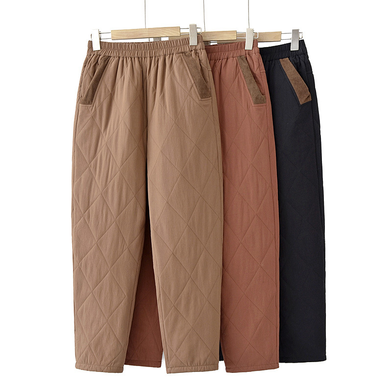 大きいサイズのキルティング綿のズボンの復古はやせています。