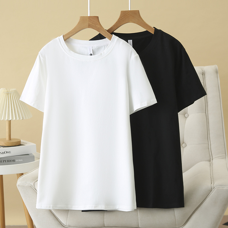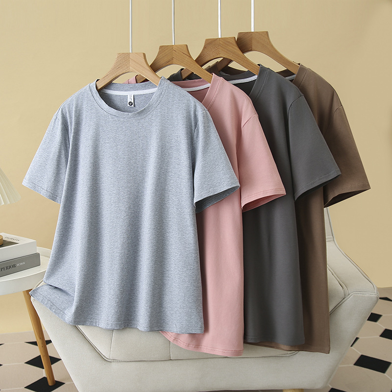 2025夏大サイズ半袖tシャツ女装基礎モデル上着丸襟太った妹シンプルな純色綿シャツ百合6223