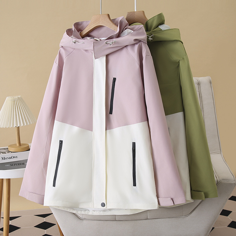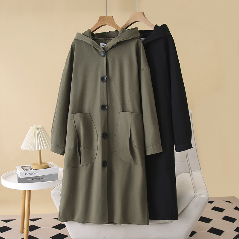 2025春タイプのロングタイプのウインドブレーカーの大きいサイズの婦人服は帽子のコートと一緒に痩せた雰囲気が現れます。