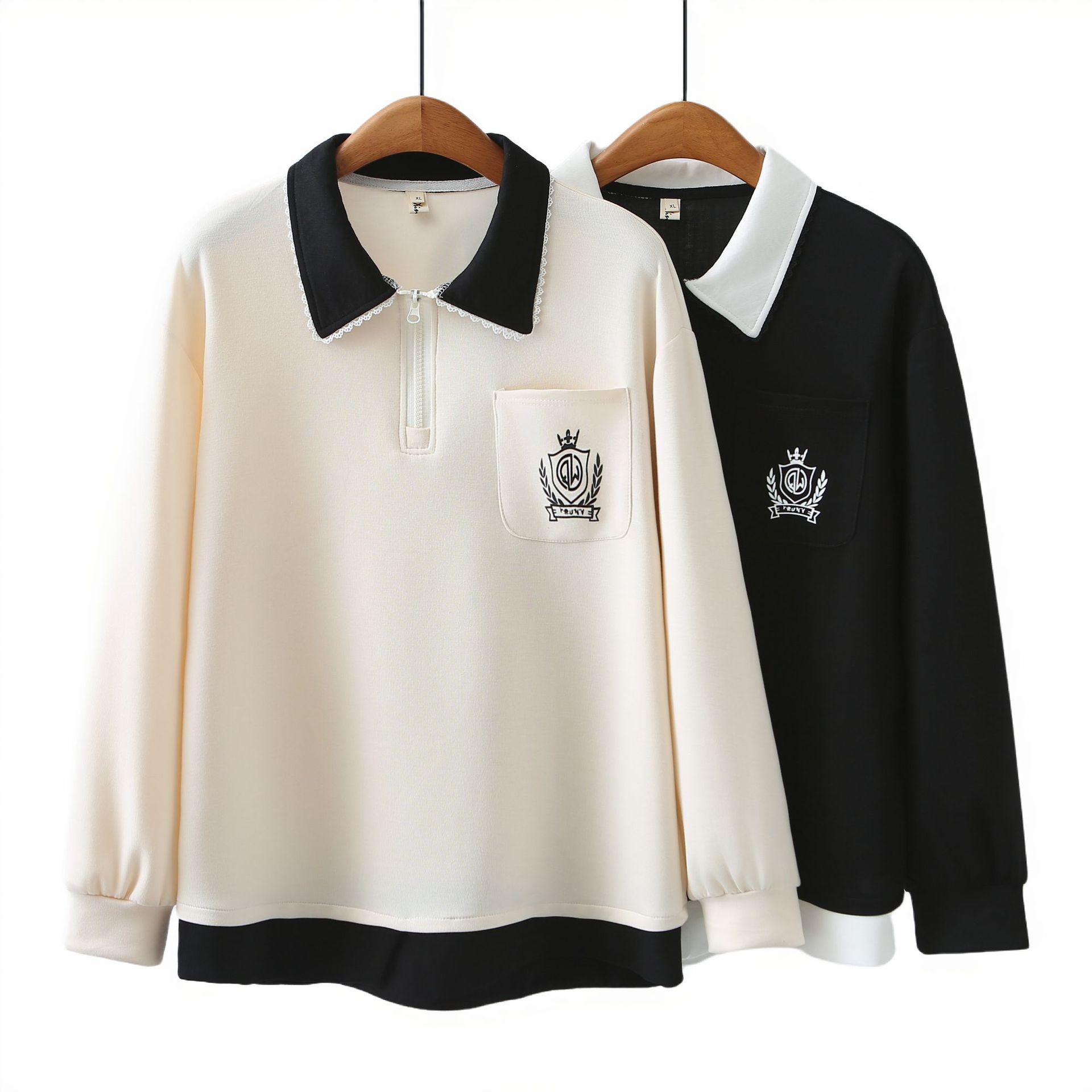 2025春の大きいサイズの衛衣の偽の2つの女装の小さい大衆のファッションは色の長袖の上着の太っている妹にぶつかって襟のtシャツを折ります2415