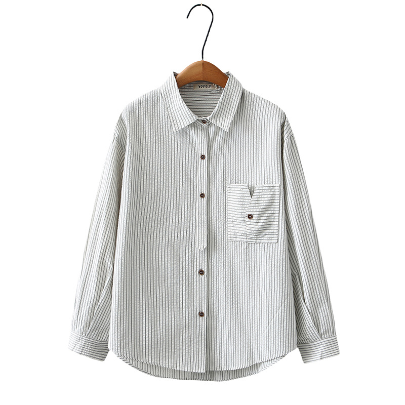 2025春ストライプシャツ長袖大サイズ女装泡しわ綿カーディガン太った妹カジュアルシャツ306