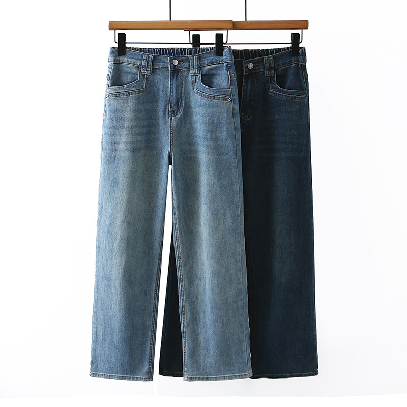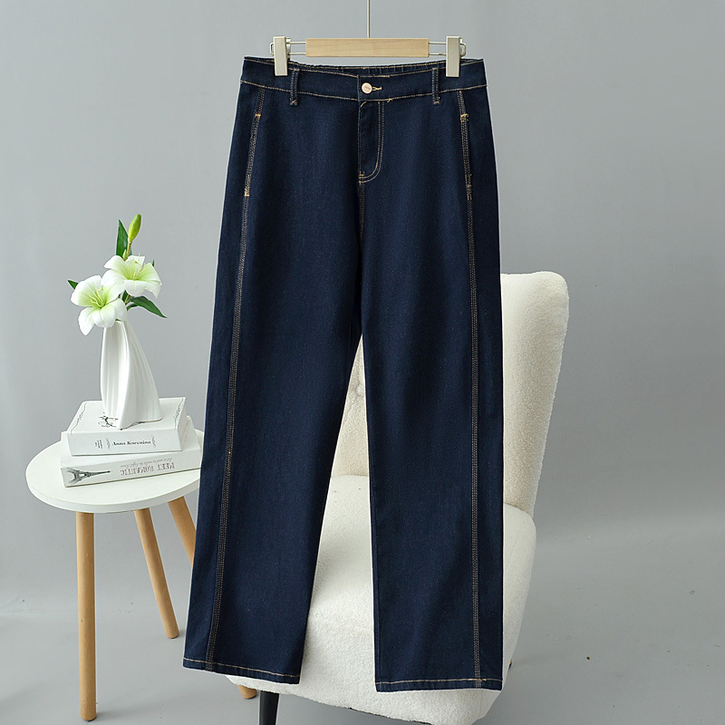 大きいサイズの女性のズボンのデニムのズボンの2025春のモデルの新商品のストレートなズボンの太っている妹はやせている弾力のズボンのファッションの2501