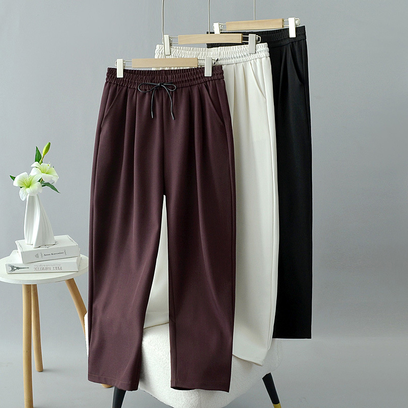 2025春の柔らかいモチモチのズボンの大きいサイズの女性のズボンは腰の高いストレートのズボンの太っている妹を引き締めます。