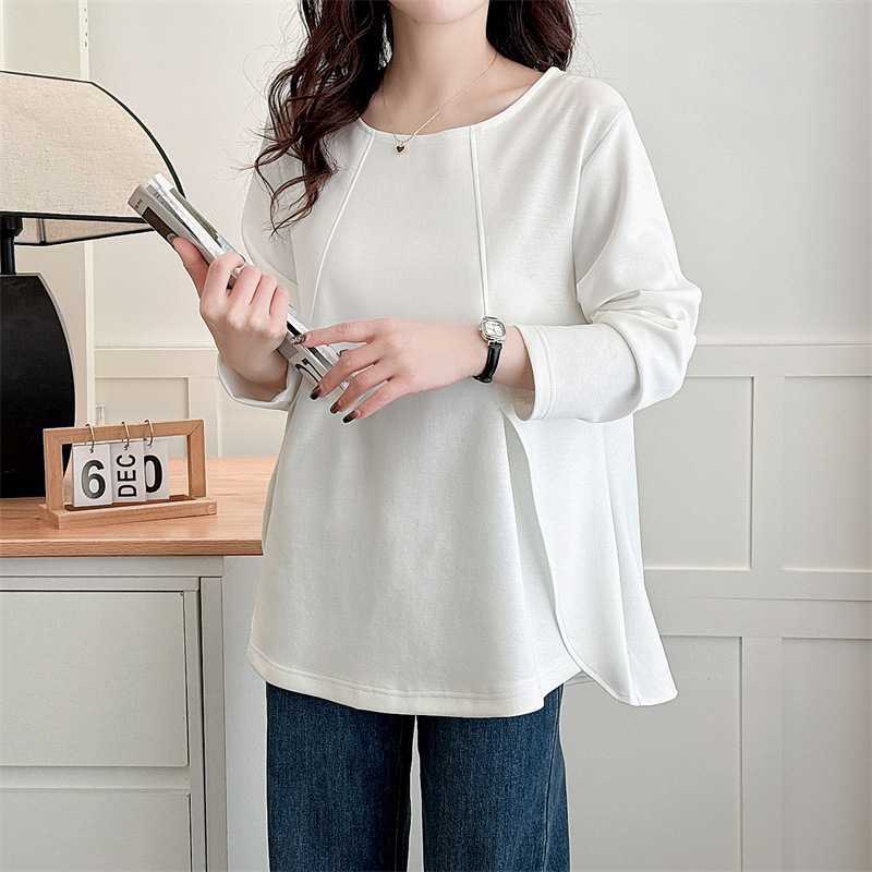 2025春の大きいサイズの女性の底のシャツの長袖の側はフォークの上着の太っている妹の200斤の気質のファッションのtシャツの小さい衆の2501