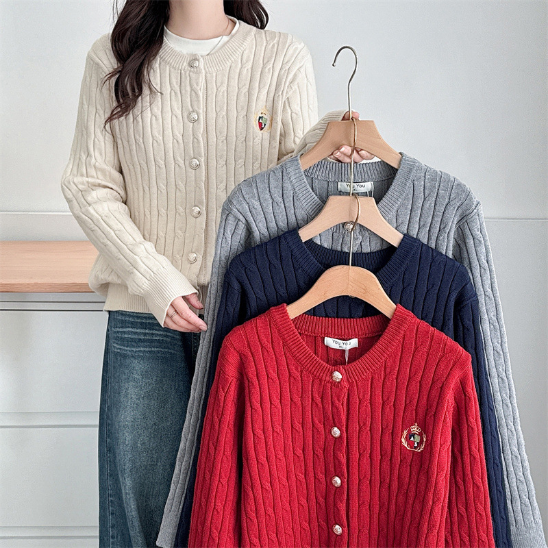 2024秋麻花セーターコート大サイズ女装刺繍長袖気質丸襟太った妹ニットカーディガン4068