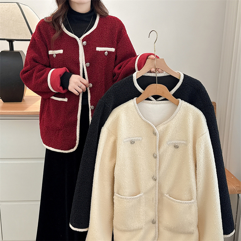太った妹の粒の毛のコートの小さい香風の2024秋の太った妹のファッションはやせている太った妹のカーディガンの丸首の小さい衆の2428を現します。