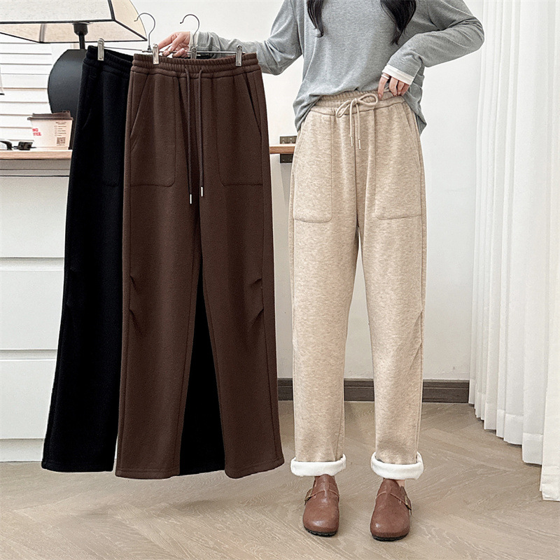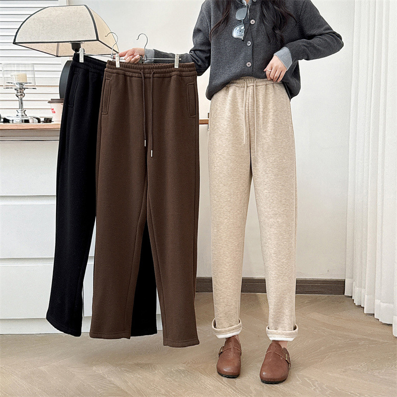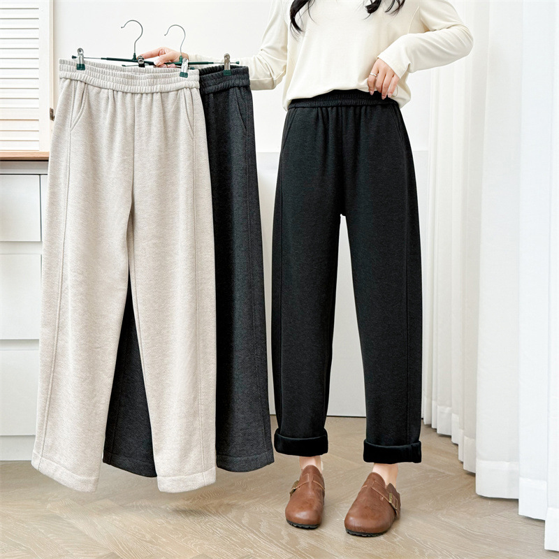 2024冬のベルベットのズボンの大きいサイズの女性のズボンの厚いストレートパンツの太った妹のカジュアルな柔らかいモチのズボンの百合ファッション6099