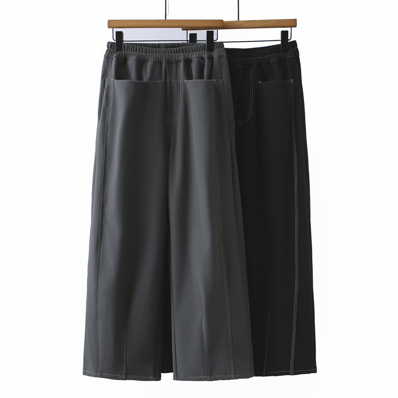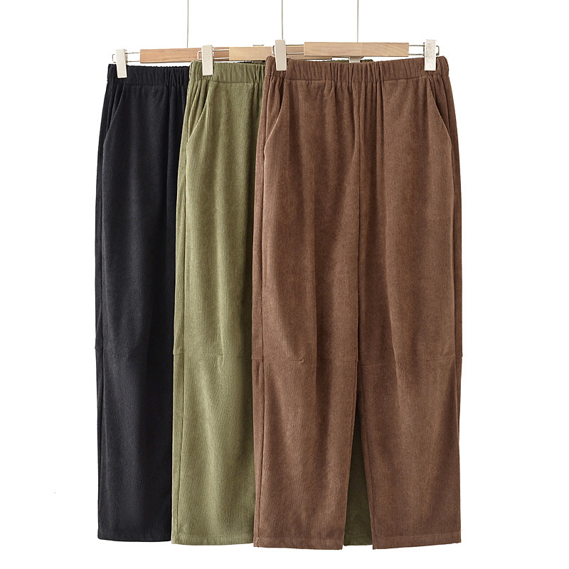 2024秋の大きいサイズのコーデュロイの女性のズボンの高腰の緩みの9分のズボンの太っている妹はやせているファッションの広い足のストレートのズボンの6172を現します。