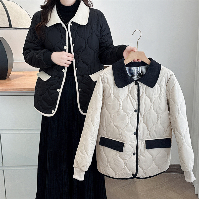 2024秋冬の薄っぺらな綿服の大きいサイズの婦人服の縁を包んで色のファッションにぶつかります。