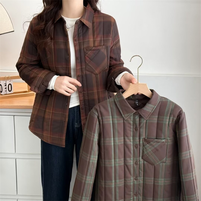 2024秋冬綿シャツの大きいサイズの婦人服はやせている格子の綿のシャツの太っている妹の長袖のコートの復古2419を現します。