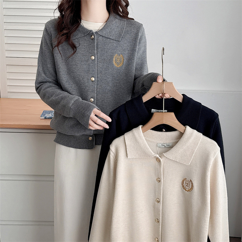 2024秋POLO襟大サイズニットカーディガン女装長袖刺繍太った妹が痩せた気質のセーターコート4069