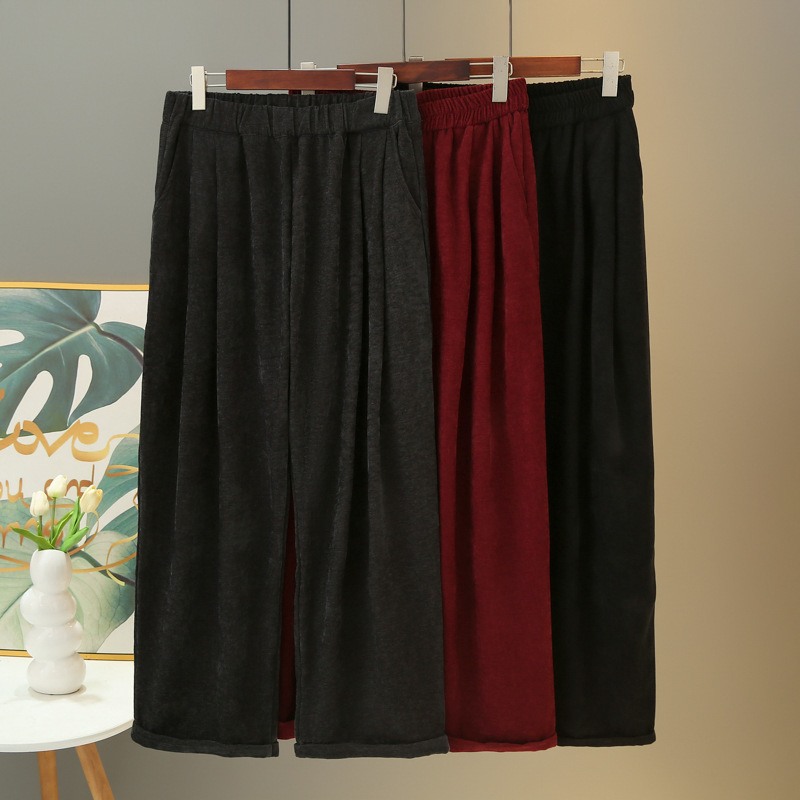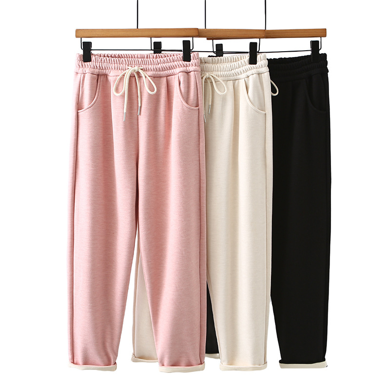 2024冬のベルベットのズボンの大きいサイズの女性のズボンの高腰のゴムの柔らかいモチのズボンの厚い太った妹のズボンはやせているハーレムのズボンの492を現します。