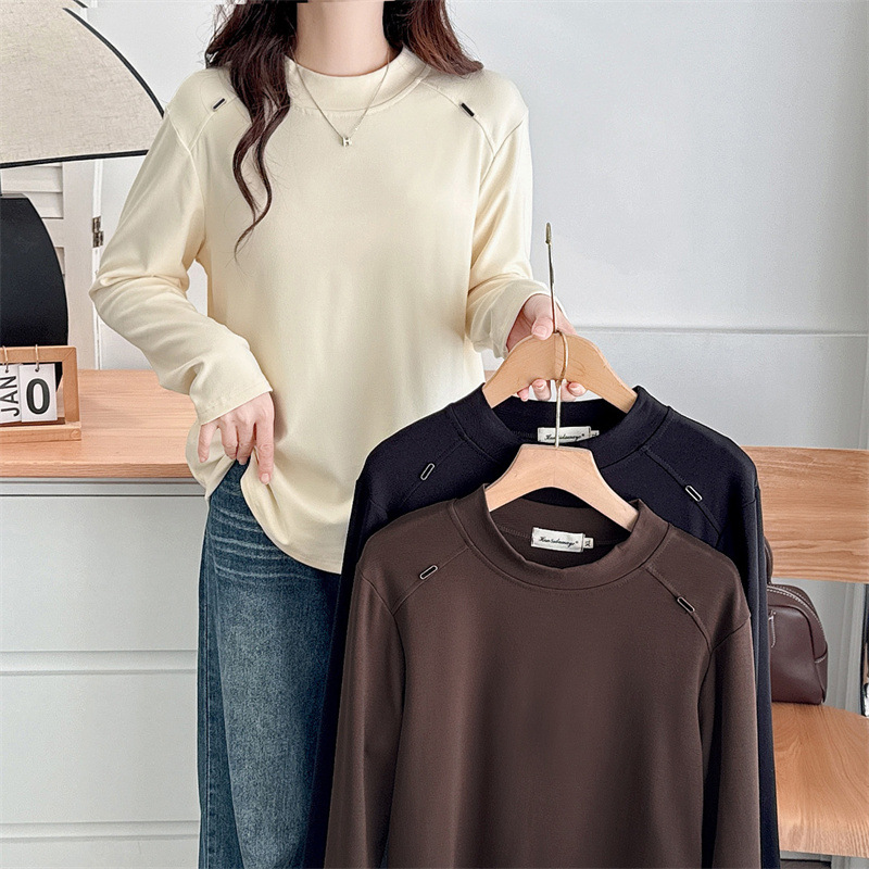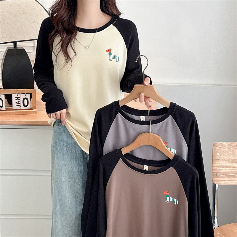 2024秋冬の色は肩の長袖の底のシャツのプリントの大きいサイズの女性にぶつかります。