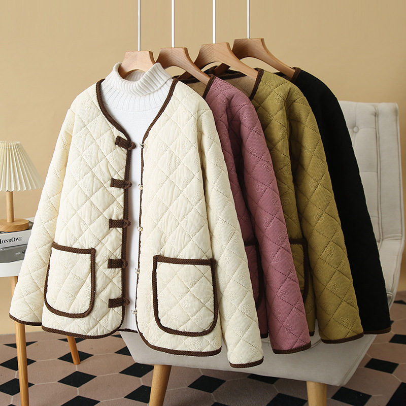 2024冬ベルベット綿服エンボス大サイズ女装丸首国風レトロ太った妹綿入れが痩せている綿服8235