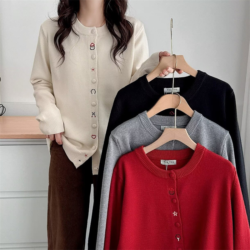 2024秋の新型の大きいサイズのセーターの刺繍の襟の婦人服の丸首の長袖のカーディガンの太った妹のニットの上着の4059