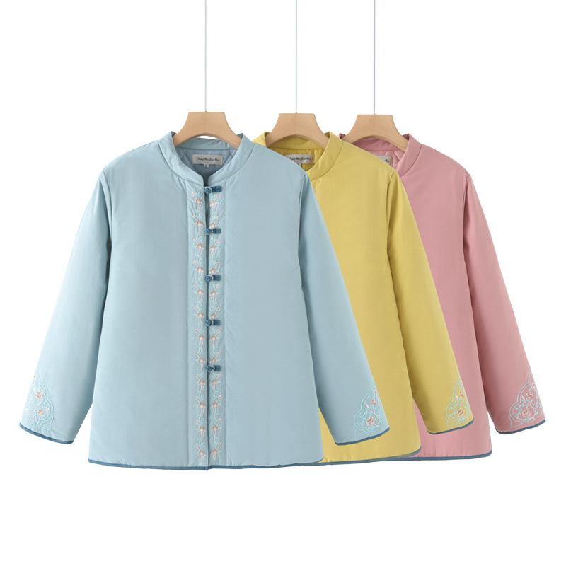 2024冬新中国式綿麻綿服の大きいサイズの婦人服のバックルの漢服の綿服の刺繍の太った妹の綿入れの国風2407