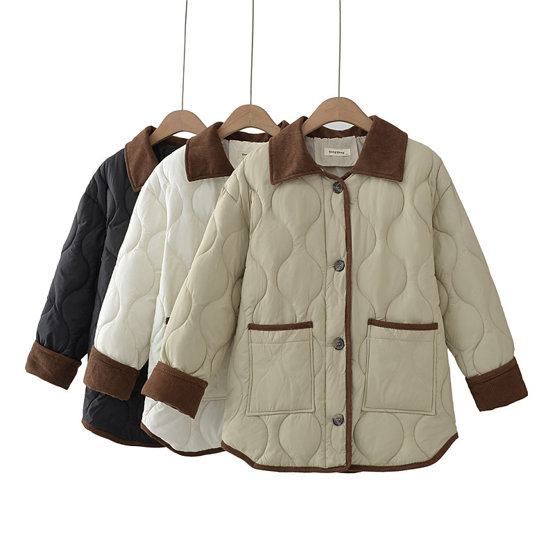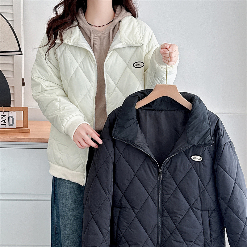 2024冬の新型の大きいサイズの綿服の婦人服は襟の気質の菱の形の格の綿服の太っている妹のカジュアルな薄い綿入れの服の2427をめくります。