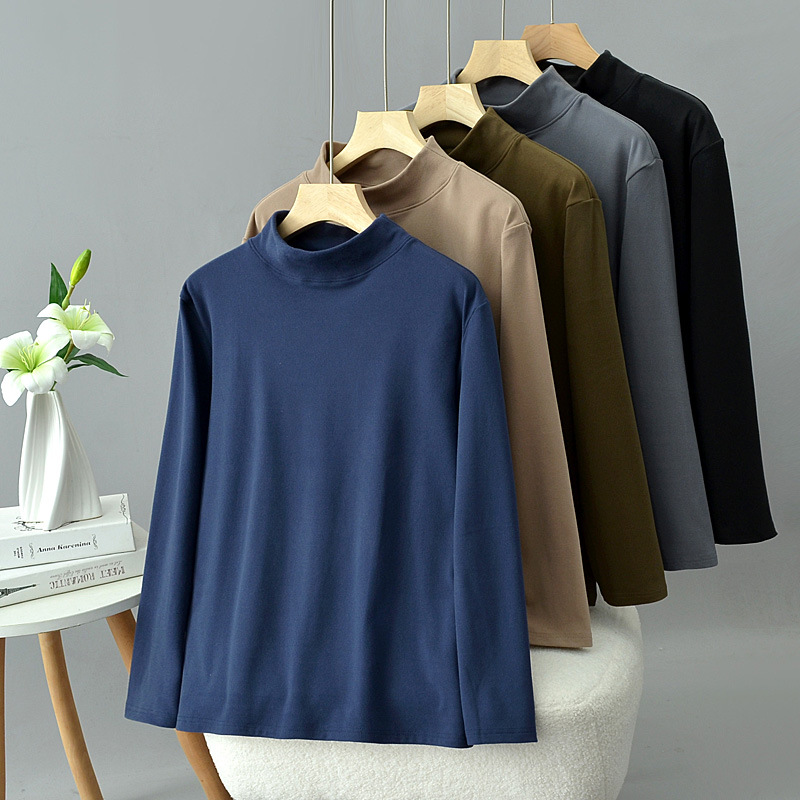 太った妹の底のシャツの半高襟の長袖の弾力のシャツの2024秋冬の百合の大きいサイズの婦人服の上着はやせています1102