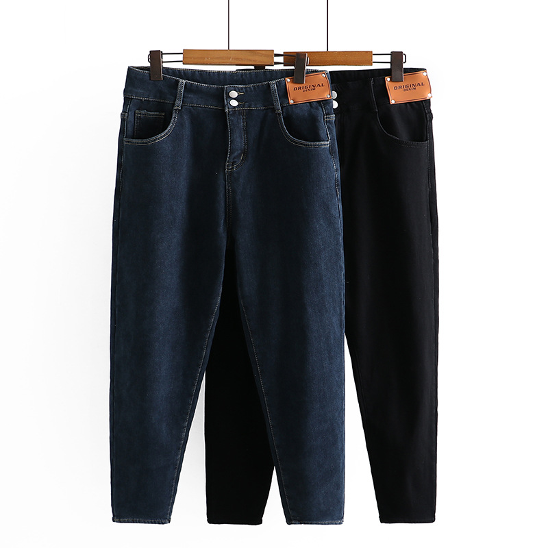 大きいサイズのジーパンとベルベットの女性のズボンは腰の弾力性が高くて、ハーレムのズボンを厚くします。