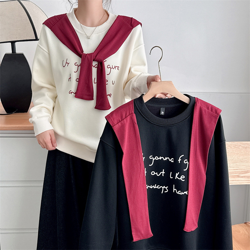2024冬のアルファベットとベルベットのマントの大きいサイズの女装は上着の太った妹のファッションのベルベットの小衆491を厚くした