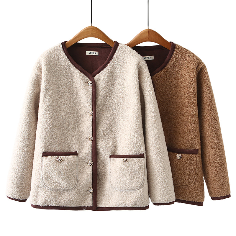 2024秋の粒の絨毛のコートは色の大きいサイズの婦人服の小さい香の風の絨毛の服にぶつかります。