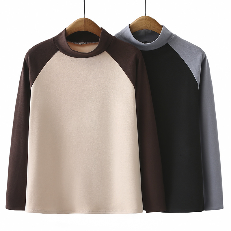 デコルテの大きいサイズの婦人服は色の立襟の底のシャツの2024秋冬の太っている妹の弾力の上着にぶつかってやせている長袖の299を現します。