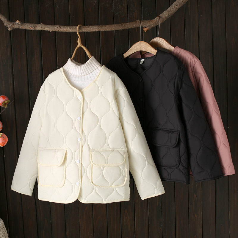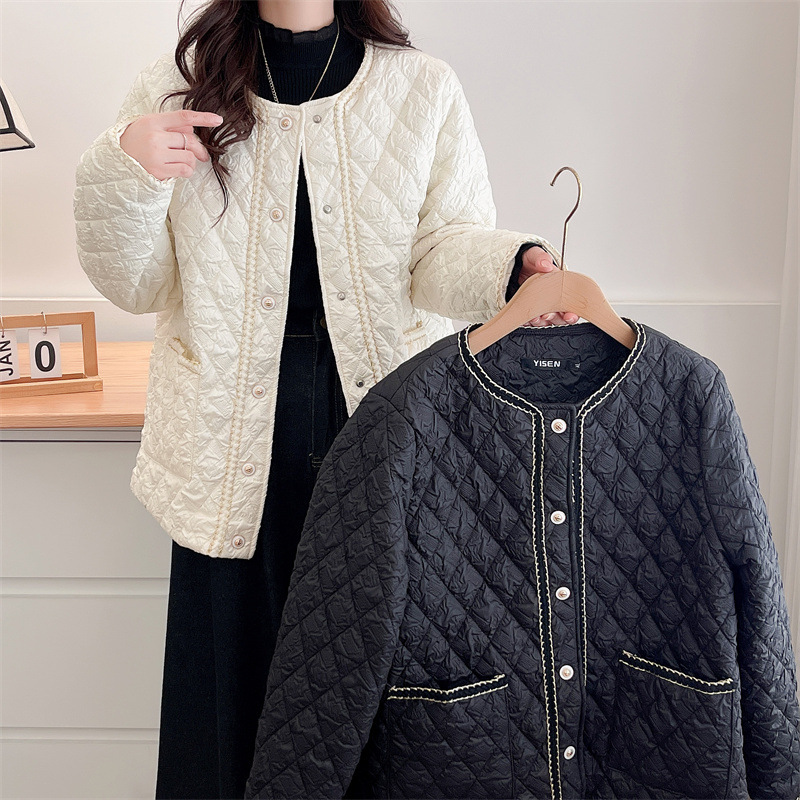 2024秋冬の小香風綿服の大きいサイズの婦人服の丸首の気質は薄いタイプの綿のコートに合わせて着痩せしている綿の服の2450を現します。