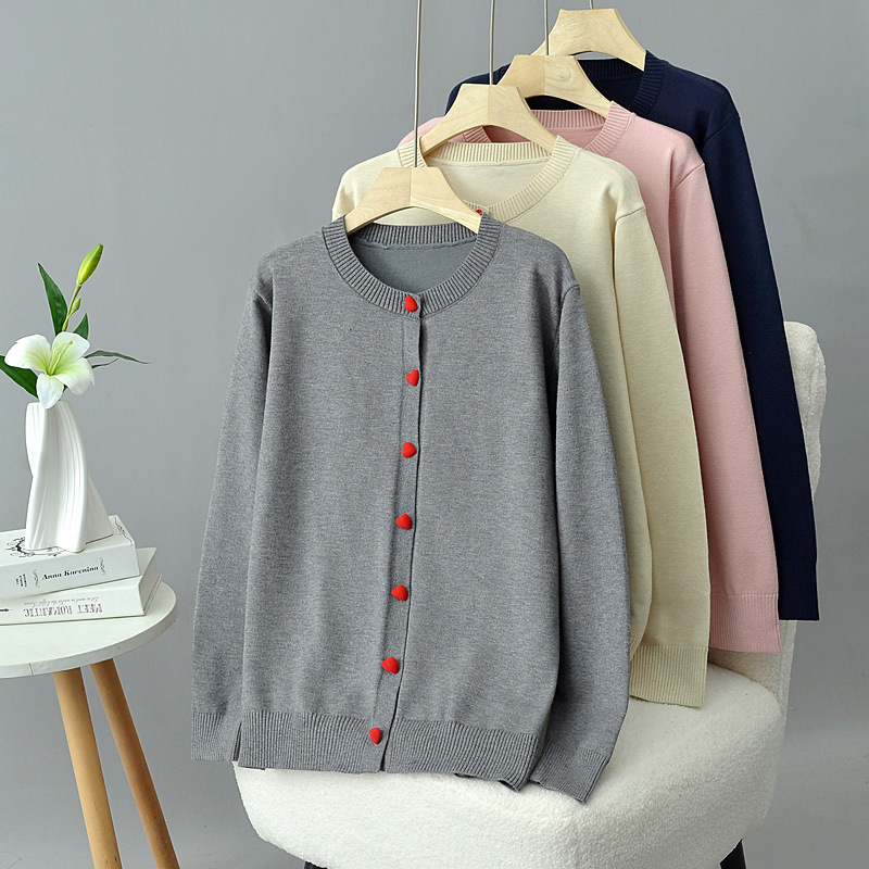 大きいサイズの女性のニットのカーディガンの長袖の赤いハートは丸首の2024秋の太った妹の200斤のコートの弾力の小さい衆の2267を掛けます