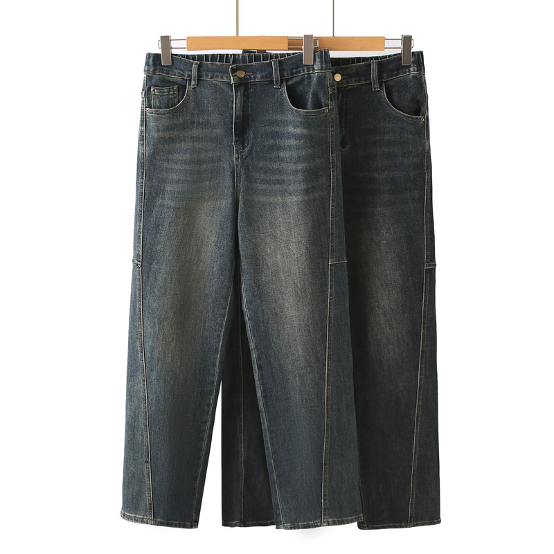 大きいサイズのジーパンの高腰の女性のズボンの2024秋の新型のカジュアルな狭い版の広腿のズボンの太っている妹はやせているズボンの8630を現します。
