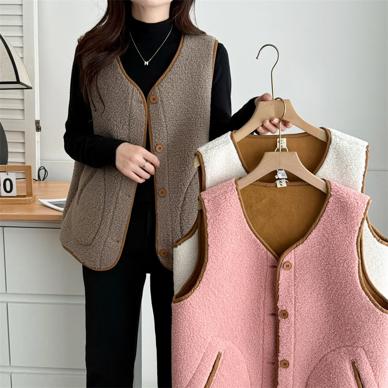 大きいサイズの馬は粒の毛の婦人服を挟んで色の袖なしのカーディガンのベストをぶつけます。