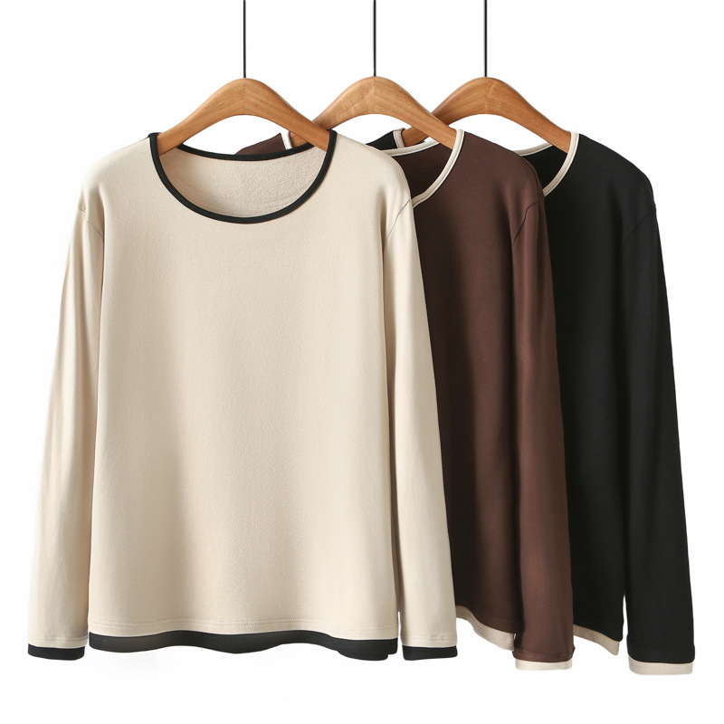 大きいサイズの底のシャツの長袖の丸首の婦人服は色の上着をつづり合わせます。