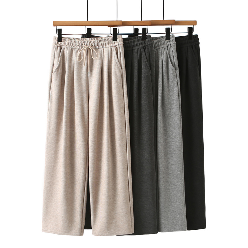 2024秋の大きいサイズの狭い版の広脚のズボンの高腰の弾力のもち米のズボンの200斤の太っている妹のズボンはやせているカジュアルなズボンの614を現します。