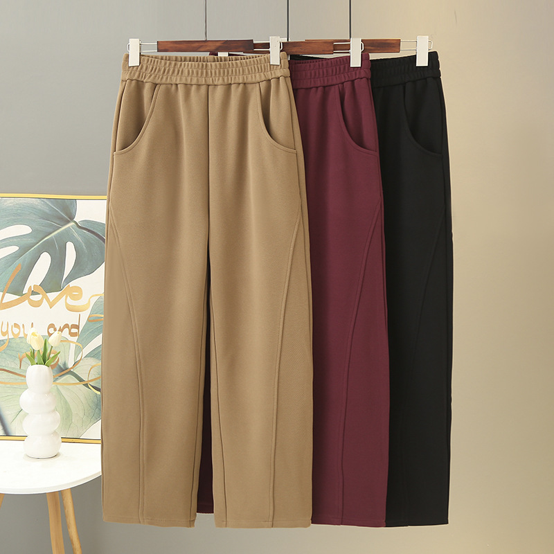 2024秋の大きいサイズの綿のズボンの高腰のゴムの女性のズボンの保温のズボンの200斤の太っている妹は綿のカジュアルなズボンを挟んで明らかにやせています8542