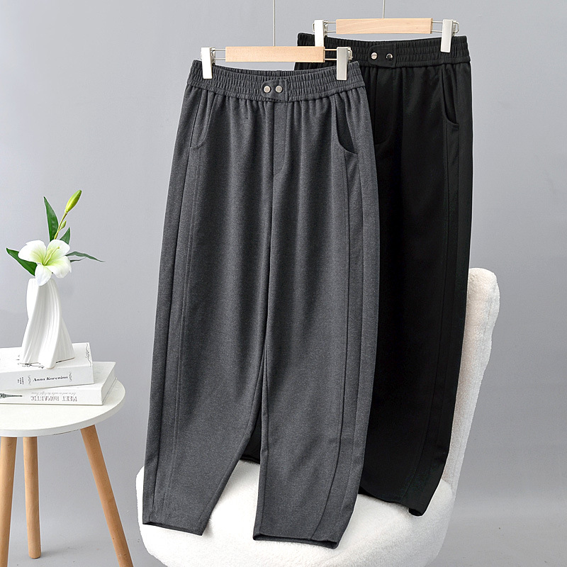 毛ラシャのズボンの大きいサイズの女性のズボンの新型の2024秋のカジュアルなズボンの高い腰のカジュアルなズボンはやせている太っている妹のハーレムのズボンの5046を現します。