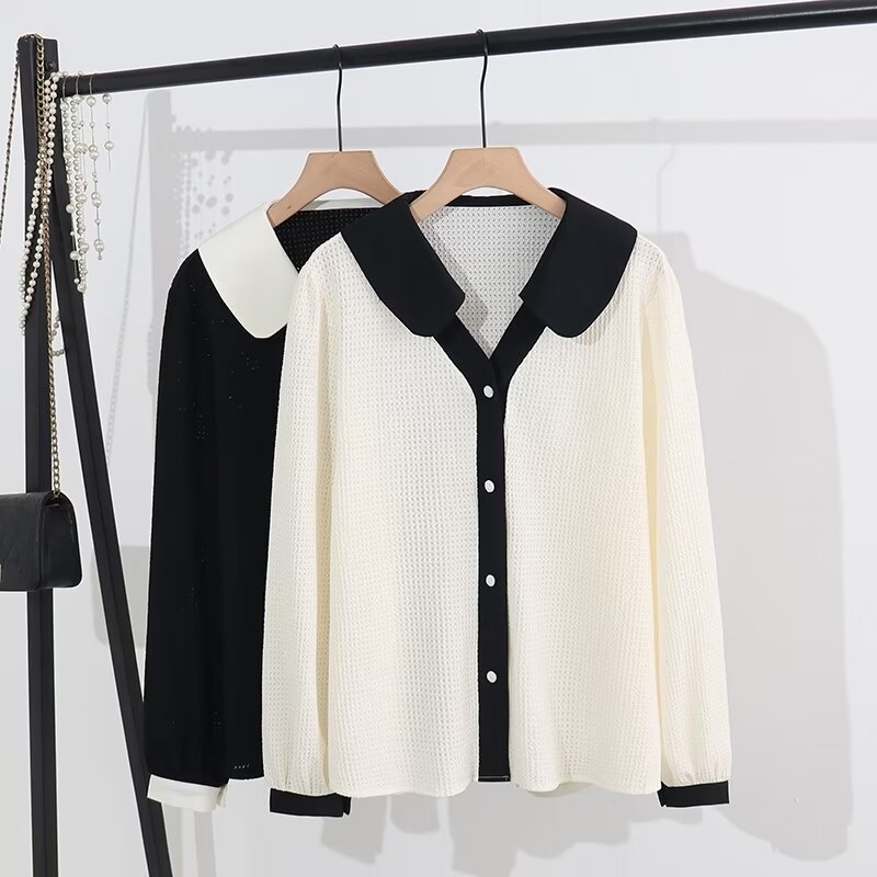 2024春衝突色シャツ長袖大サイズ女装200斤気質カーディガン太った妹コートレースシャツ2303