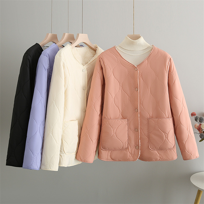 2024秋冬の綿服の大きいサイズの婦人服の新型の立襟の200斤のファッションの綿服のシンプルな綿のコートはやせている8009を現します。