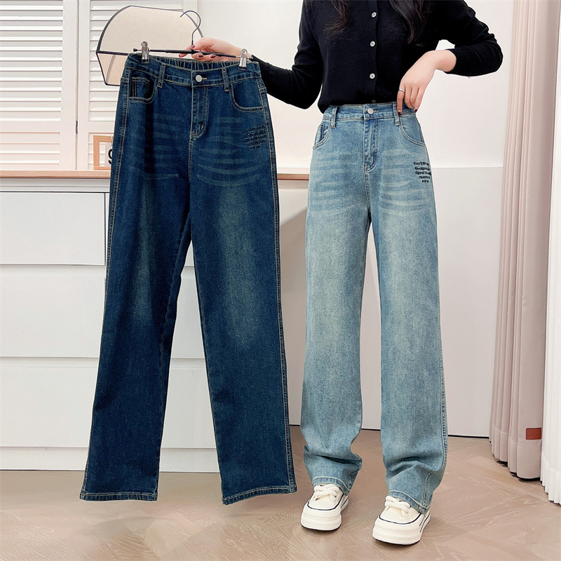 2024秋の狭い版のジーパンの大きいサイズの女性のズボンの高腰の気質のアルファベットの刺繍のズボンの太っている妹はやせている弾力性の2471を現します。