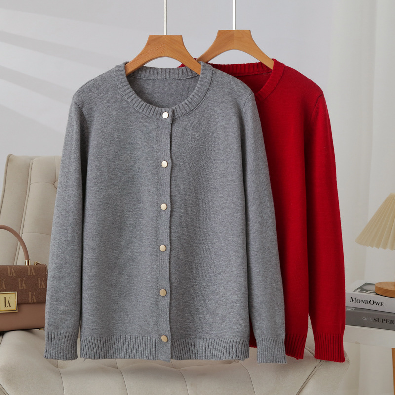 2024秋の大きいサイズのセーターのカーディガンの丸首の長袖のシンプルな純色のコートの太った妹の弾力のニットはやせています229