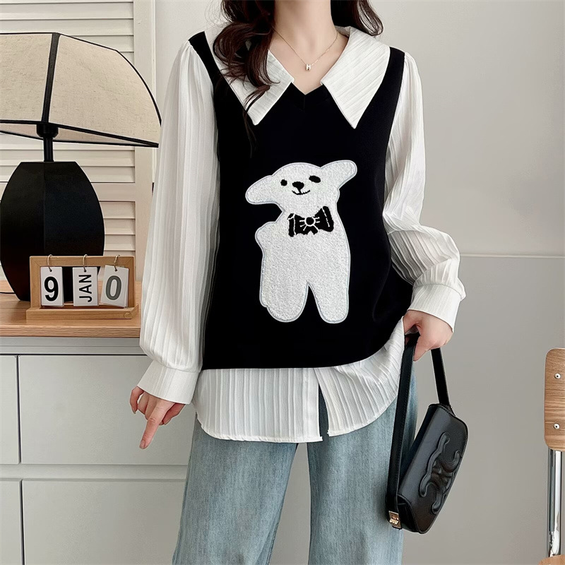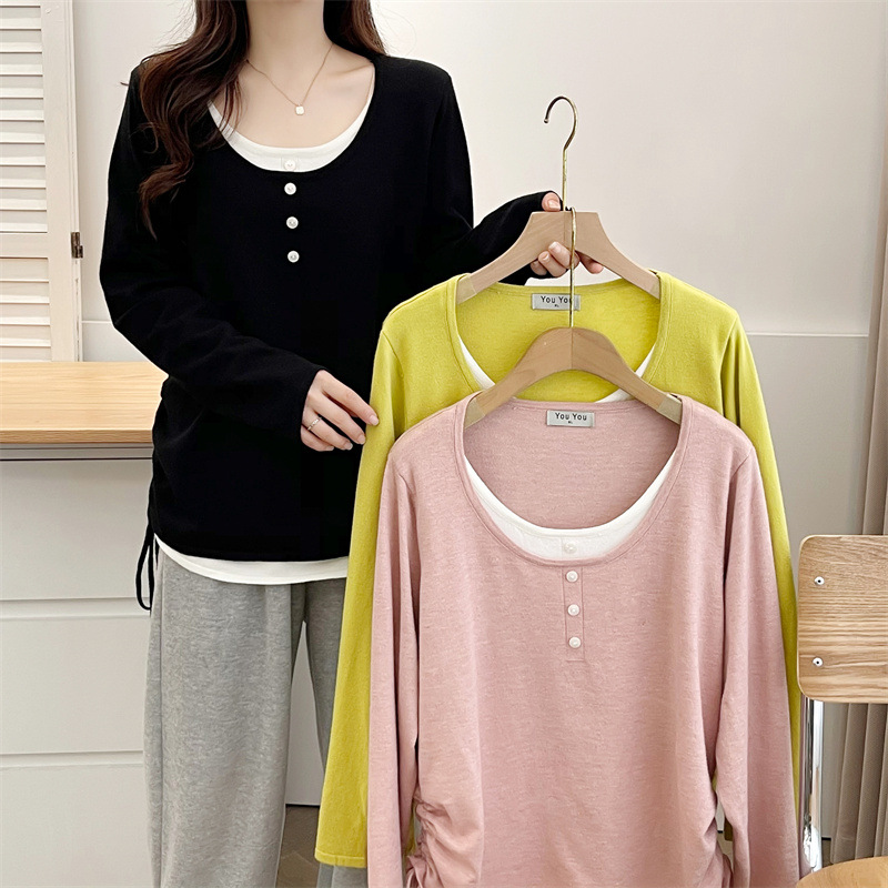 2024秋の大きいサイズのニットの長袖の偽の2つの上着の女装は色の200斤の弾力性をぶつかって腰のtシャツの潮を収めます4035