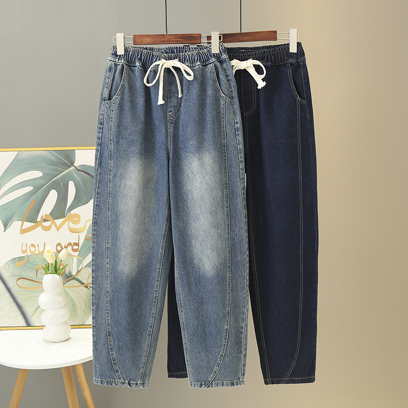 大きいサイズのジーパンの復古の女性のズボンは腰の高さの2024秋の弾力のズボンの200斤の太っている妹のハーレムのズボンの8979を緩めます。